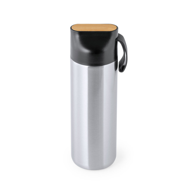 Elegante set premium, che comprende:Tazza thermos a doppia parete in acciaio inox. Capacità di 640 ml, con area in bambù sul coperchio per il branding. Blocco note in morbido PU con porta smartphone integrato sulla copertina e area in bambù per il branding. Include chiusura elastica, segnalibro e portapenne in coordinato. Allinterno 80 fogli di layout a righe. Penna a sfera in alluminio con finitura opaca, area in bambù per il branding, meccanismo a rotazione e inchiostro blu. Presentata in un astuccio individuale con finitura opaca e chiusura magnetica, con fustellatura interna per ciascuno degli elementi del set.