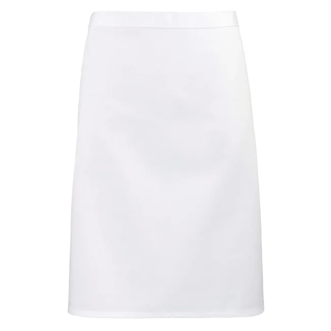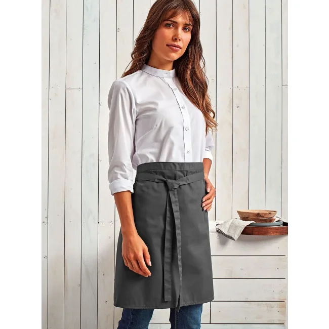 65% poliestere, 35% cotone twill. Mezzo grembiule. Lavabile a 60° in lavatrice domestica, e 85° in lavatrice industriale.