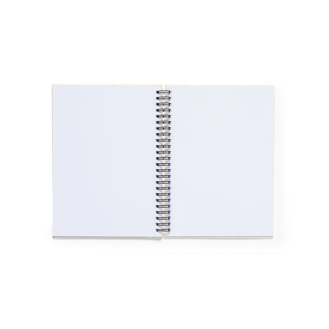Taccuino ad anelli A5 con copertina rigida in robusto cartone riciclato. All'interno 80 fogli bianchi lisci 100% riciclati. Presentato in busta individuale riciclata.