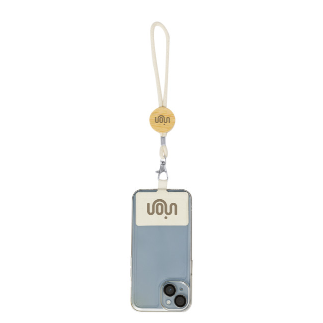 Originale bracciale portacellulare in morbido cotone, adattabile a tutti i tipi di polso. Con accessorio per il trasporto da inserire tra la custodia e lo smartphone. Parte centrale in bambù per la personalizzazione, in particolare per l'incisione laser. Presentato singolarmente in un bustina di carta riciclata.Materiali come il bambù favoriscono l'utilizzo di materie prime naturali, riducendo le emissioni inquinanti. Proviene da una pianta altamente resistente e versatile, con una rapida crescita e rigenerazione, rappresentando un'ottima alternativa all'uso del legno tradizionale.