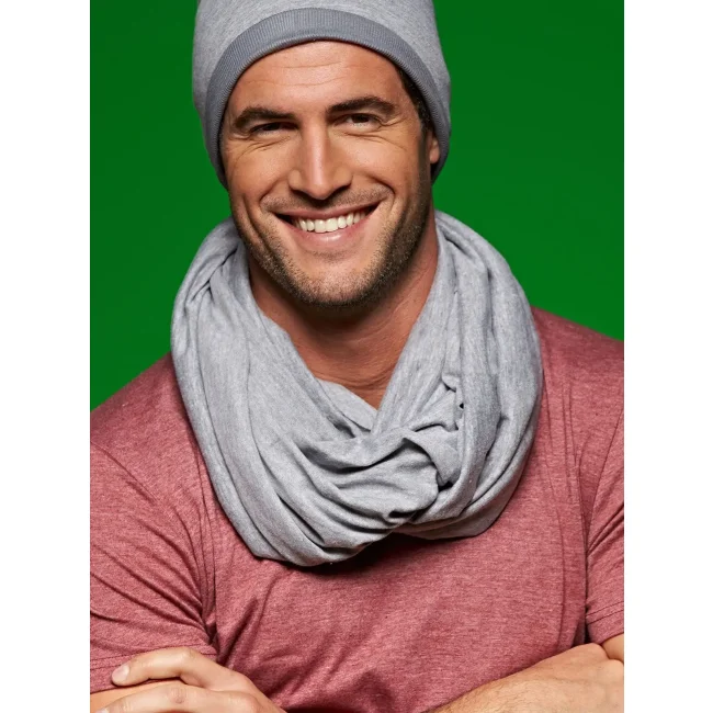 65% poliestere 35% cotone. Scaldacollo stile urban, in tessuto a maglia fine, disponibile in diverse varianti di colore. Dimensioni: 75 x 80 cm.