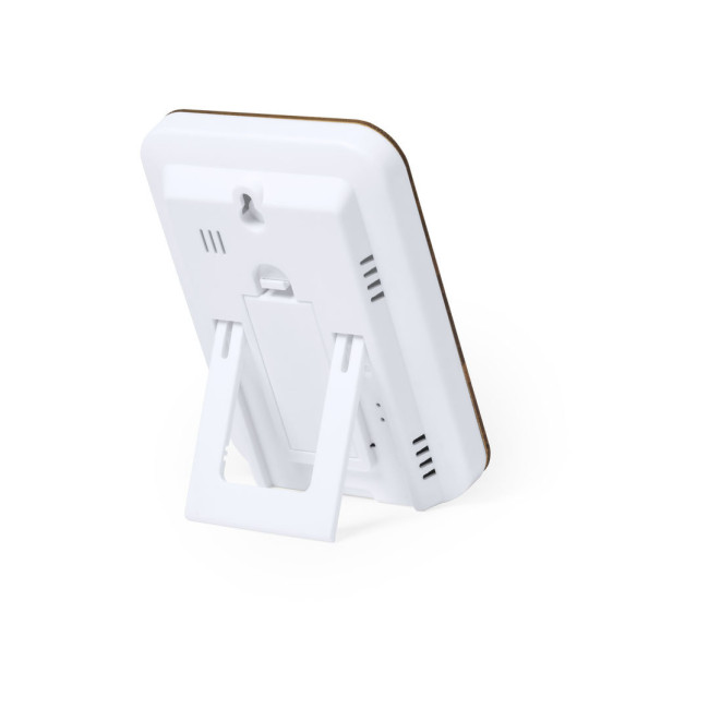 Stazione meteorologica della linea Nature con frontale in bambù. Funzioni igrometro e termometro. Alimentato da batterie (2xAAA non incluse) e presentato in un'attraente scatola di design ecologico.