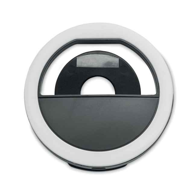 Anello di luce portatile per selfie in materiale ABS, con 28 LED. Se siete degli artisti o utilizzate Tik-tok® o scattate foto per Instagram, questa luce è un must. La luce bianca è regolabile in 3 diversi livelli di luminosità per una perfetta esposizione alla luce. Poiché i 28 LED sono disposti in cerchio, avrete un'illuminazione piacevole e uniforme sul viso. La lampada ha una batteria ricaricabile USB da 80 mAh.