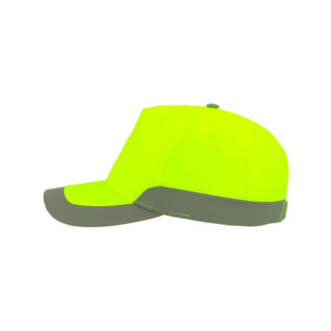 100% poliestere. Parasudore: 35% cotone, 65% poliestere. Cappellino a 5 pannelli, occhielli ricamati, banda riflettente, pannello frontale rinforzato, visiera pre-curvata, chiusura in velcro, ideale per la stampa, bottone riflettente, taglia unica.