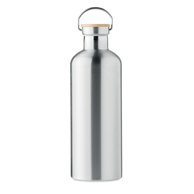 Thermos isolante sottovuoto in acciaio inox a doppio strato con coperchio in bamboo e manico per il trasporto. Capacità: 1500 ml. Senza perdite. Mantienete le bevande fredde o calde con questa bottiglia isolata in acciaio inossidabile. Portate con voi il vostro caffè preferito, il tè o la cioccolata calda impugnando la bottiglia per il comodo manico. Il coperchio in bamboo dona un tocco naturale.