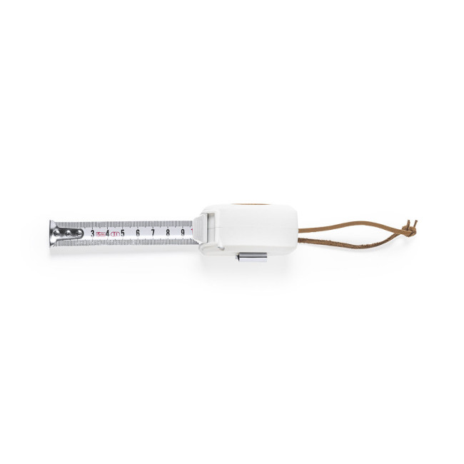 Flessometro della linea natura di 5 metri, prodotto in una combinazione di bambù e ABS con rivestimento di gomma. Lama in metallo con freno, clip da cintura in metallo e tracolla in PU. Con grande area di stampa a disposizione e confezionato in un'attraente scatola eco-design