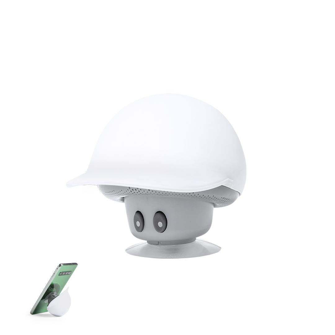 Altoparlante dall'originale design a fungo con tappo e funzione di supporto per il telefono cellulare. Connettività Bluetooth® 5.0, potenza di 3W e funzione vivavoce. Corpo con finitura gommata e ventosa per la funzione di supporto. Cavo micro USB incluso e presentato in un'attraente scatola dal design kraft. Manuale di istruzioni disponibile in inglese e spagnolo.