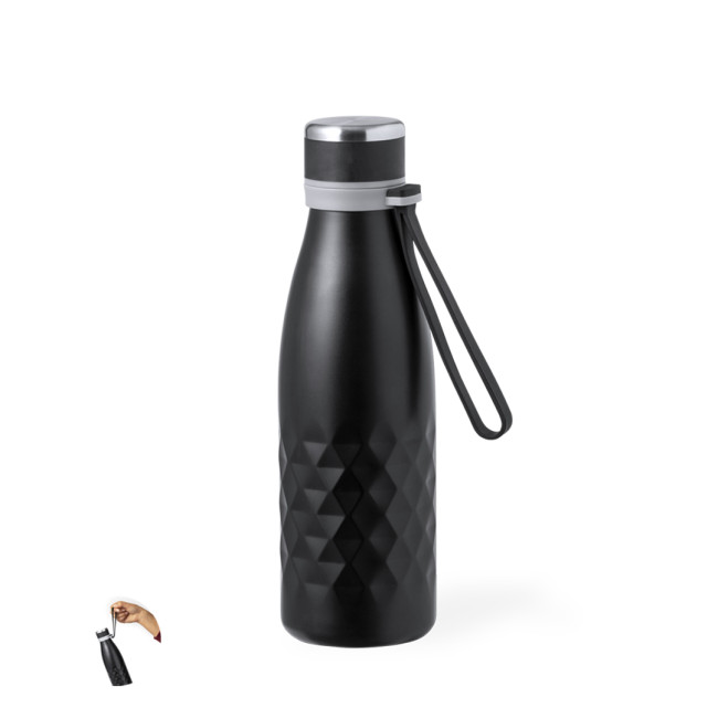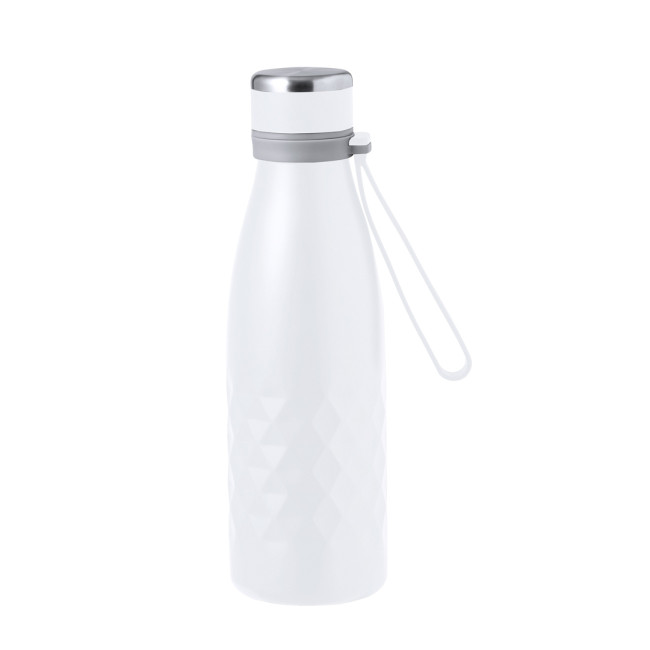Elegante borraccia termica da 550 ml in acciaio inox a doppia parete con tappo a vite per una tenuta ottimale. Viene fornita con un comodo manico coordinato in gradevole silicone. Disponibile in una gamma di colori metallizzati, con un elegante motivo a rombi intorno al corpo. Presentata in una scatola di design kraft individuale.