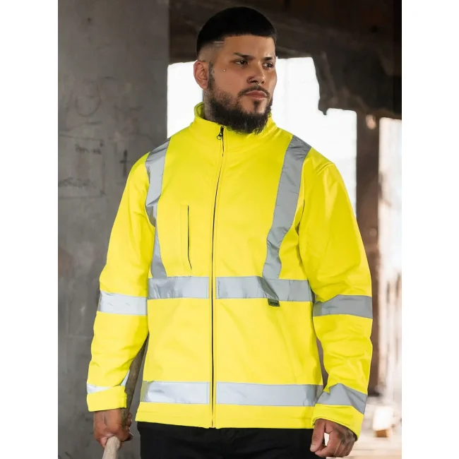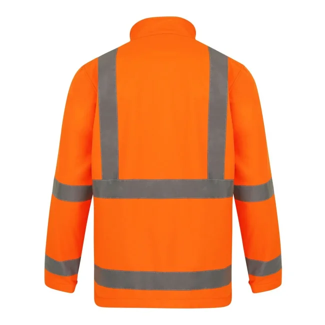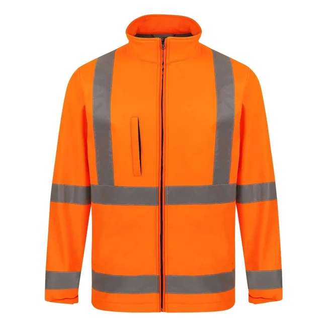 100% poliestere. Giacca Softshell 2 strati ad alta visibilità, conforme alla normativa EN ISO 20471:2013 + A1:2016, colore arancione conforme anche alla normativa GO/RT 3279. Due fasce riflettenti da 5 cm intorno al corpo, due fasce riflettenti larghe 5 cm perpendicolari alle spalle, fodera in pile antivento e termoisolante, due tasche laterali, una tasca anteriore altezza petto con zip, durata delle proprietà riflettenti in conformità alla normativa EN per 25 cicli di lavaggio a 40°C. Confezionata singolarmente in una pratica borsa in polietilene. Classe 3 per tutte le taglie.