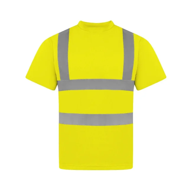 100% poliestere. T-Shirt ad alta visibilità, certificazione EN ISO 20471:2013 + A1:2016, colore arancione conforme anche alla normativa GO/RT 3279, Oeko-Tex® Standard 100. Due fasce riflettenti larghe 5 cm intorno al corpo, due fasce riflettenti larghe 5 cm perpendicolari alle spalle, materiale morbido e traspirante, durata delle proprietà riflettenti in conformità alla normativa EN per 25 cicli di lavaggio a 40°C. Confezionata singolarmente in una pratica borsa in polietilene.