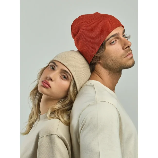 100% Polylana® . Berretto in maglia doppio strato con taglio dritto, fibre ottenute da bottiglie di plastica riciclate. Etichetta removibile.