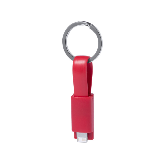Caricabatterie USB portachiavi in un'ampia gamma di colori vivaci. Con doppia connessione micro USB/lightning. Presentato in un sacchetto individuale.