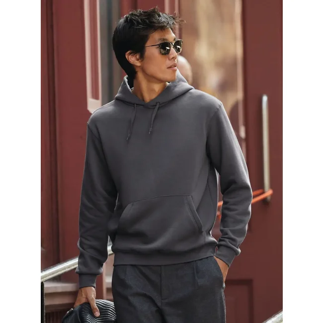 Felpa Hooded realizzata in cotone e poliestere, presenta un cappuccio foderato con cordino e occhiello in metallo. La tasca a marsupio e i polsini in costina 1x1 elastan offrono praticità e comfort. La struttura felpata internamente e le cuciture laterali garantiscono una vestibilità ottimale.