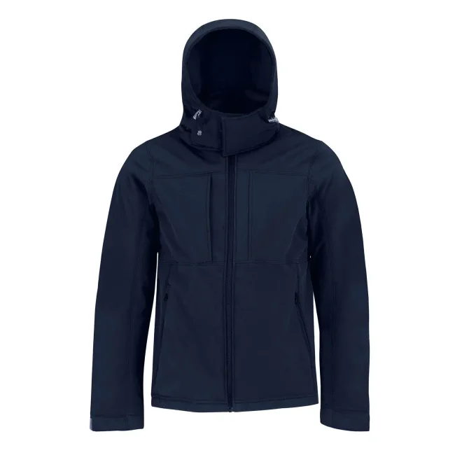 Hooded Softshell Men, realizzata in 94% poliestere e 6% elastane, è una giacca tecnica con tessuto a triplo strato. Dotata di cappuccio removibile con zip e regolabile con elastico, presenta due tasche frontali con cerniera per un comfort pratico e funzionale.