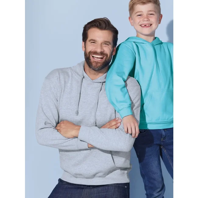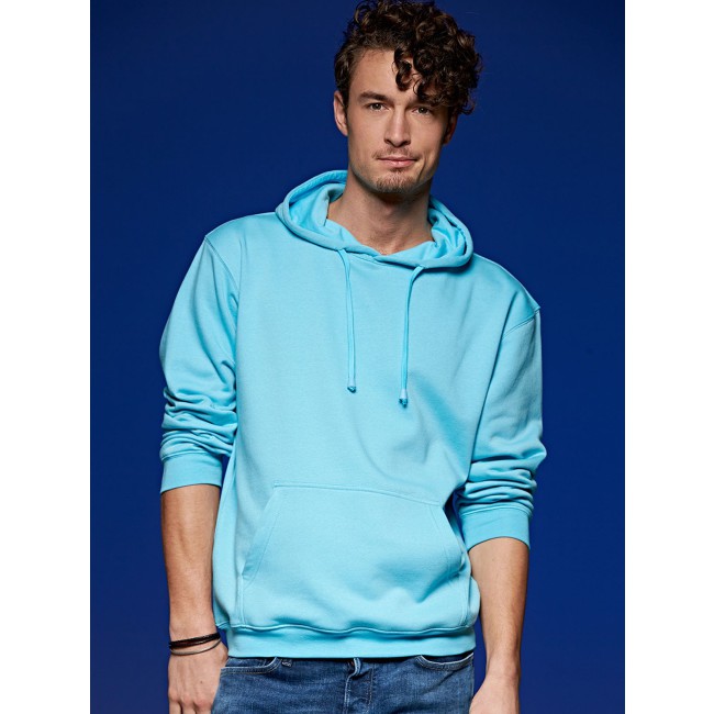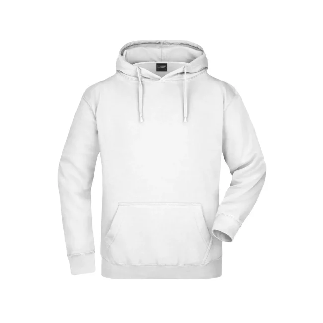 80% cotone, 20% poliestere. Felpa classica con cappuccio, Felpa di alta qualità con interno felpato, Necktape, bordino con elastan, grande tasca a marsupio, Cappuccio a doppio strato. Lavabile a 60° C, mantiene la forma, Tessuto esterno (300 g/m²). Manica lunga.