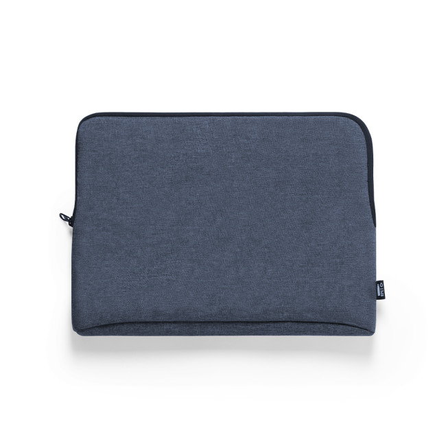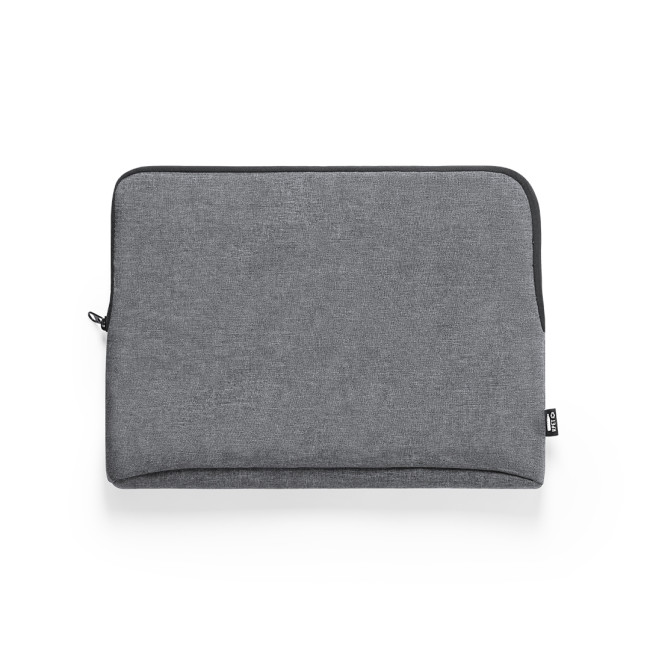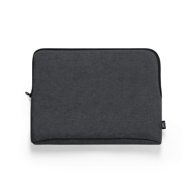 Custodia per laptop della linea Nature line in resistente RPET 600D effetto melange, realizzata in plastica riciclata per favorire il riutilizzo dei rifiuti plastici e contribuire alla sostenibilità del pianeta. Dettagli neri e scomparto principale con cerniera. Interno completamente imbottito e foderato, con logo RPET sull'etichetta esterna.