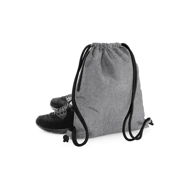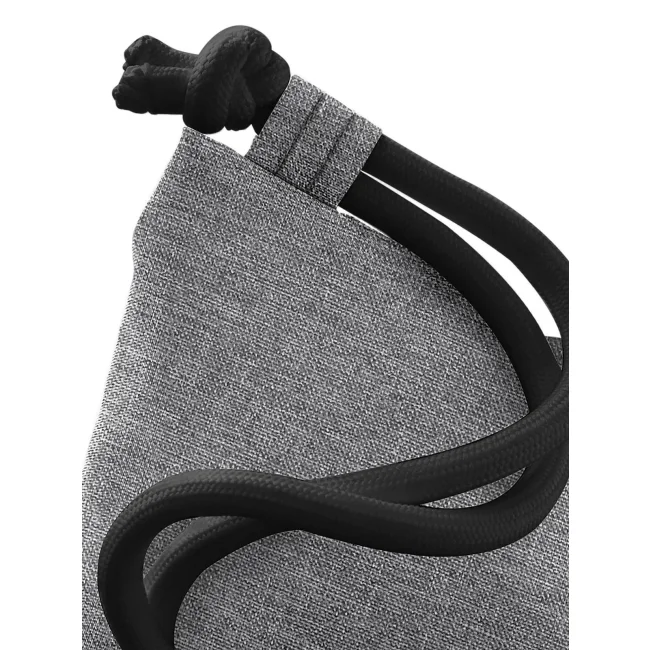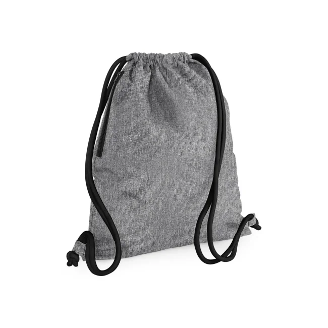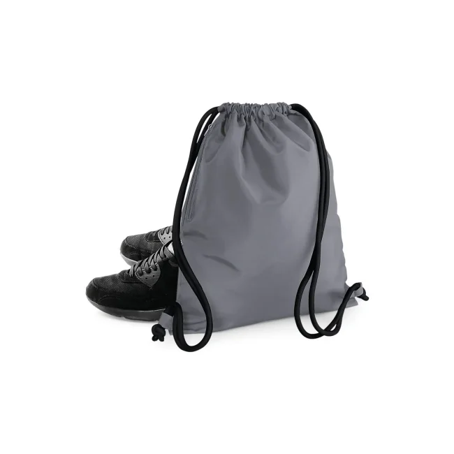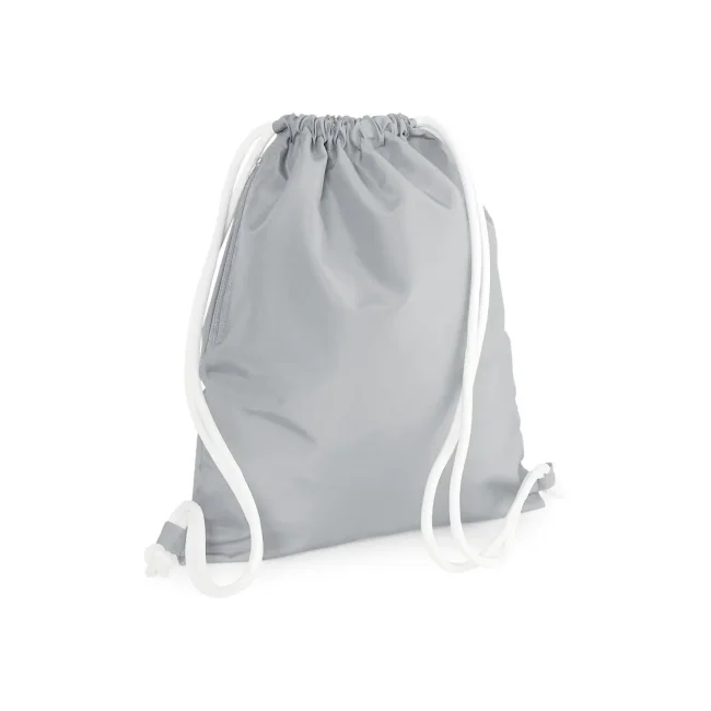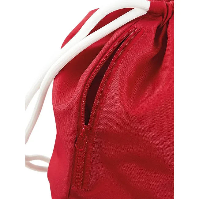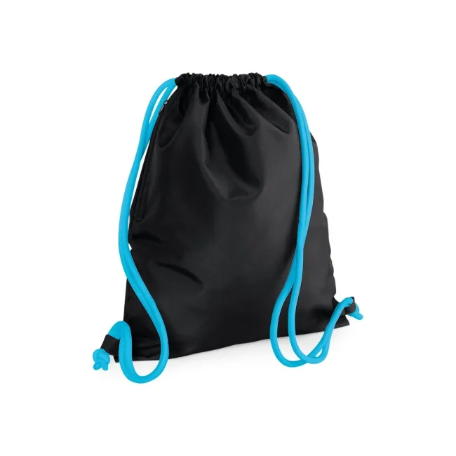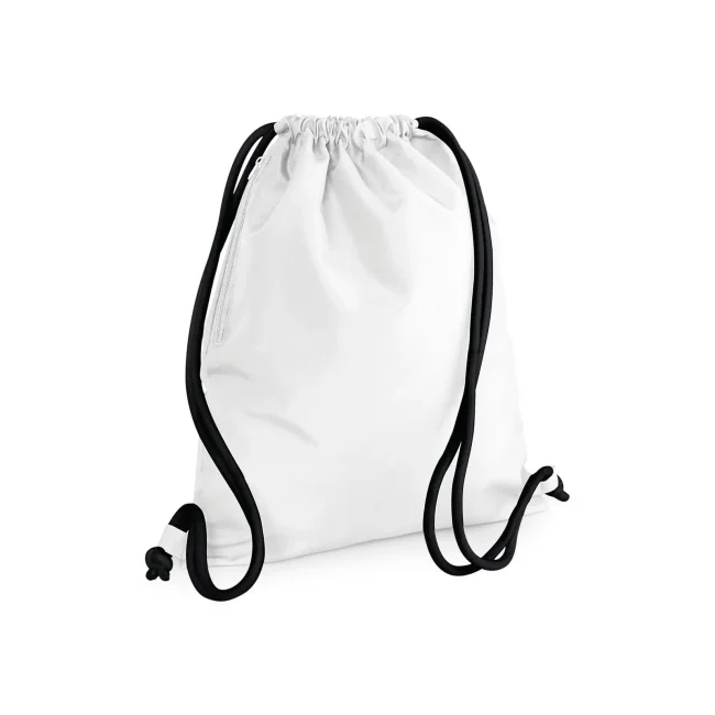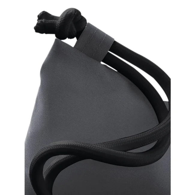 100% poliestere 300d. Sacca con tasca interna laterale con cerniera, cordoncini spessi Dimensioni: 40 x 49 cm, capacita' 15 litri, area stampabile: 36 x 42 cm.