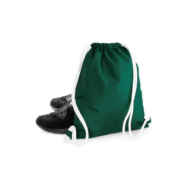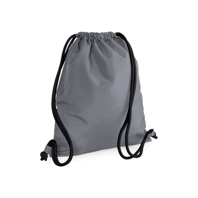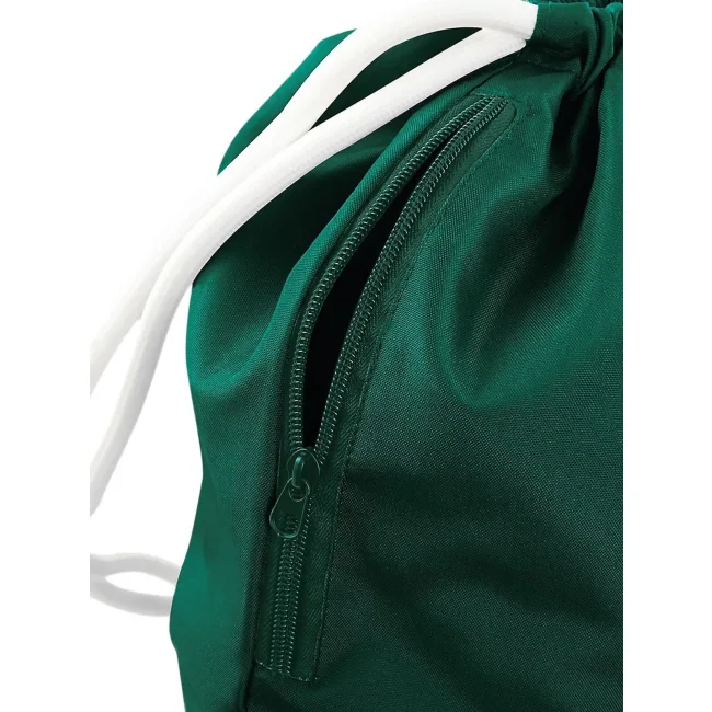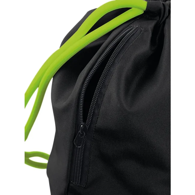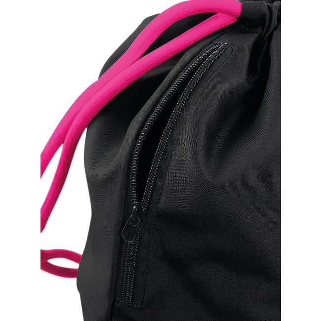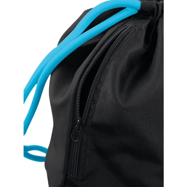 Icon Drawstring Backpack realizzata in 100% poliestere 300D, con tasca interna laterale con cerniera. Le dimensioni sono 40 x 49 cm, con una capacità di 15 litri e un'area stampabile di 36 x 42 cm. I cordoncini spessi offrono un trasporto comodo e sicuro.