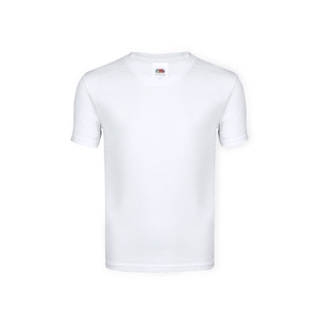 T-shirt Iconic taglia bimbo bianca Fruit Of The Loom. Realizzata in 100% cotone pettinato Ring Spun 140g/m2. Morbida al tatto e dal taglio classico, con girocollo stretto a costine 1x1. Etichetta facilmente rimovibile. Disponibile nelle taglie 3-4, 5-6, 7-8, 9-11, 12-13, 14-15.