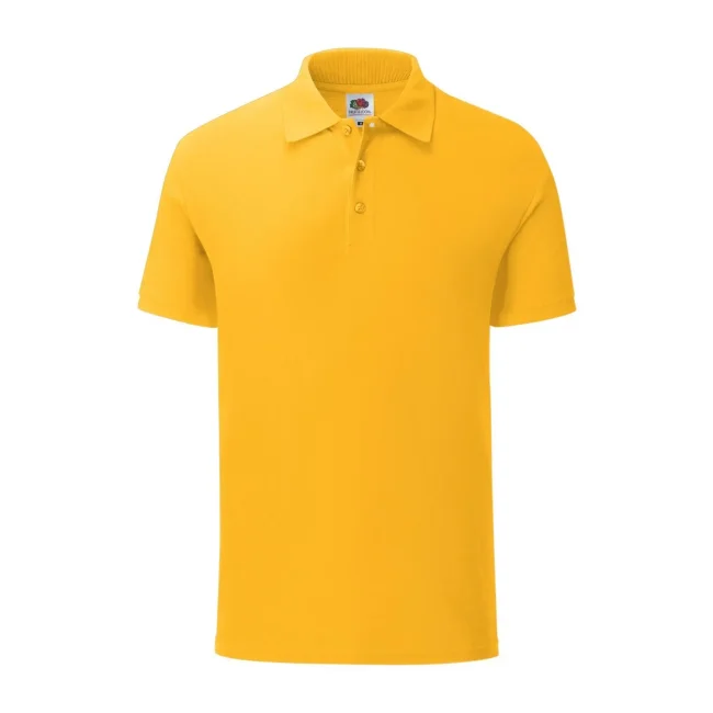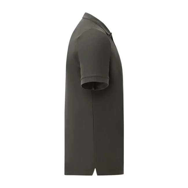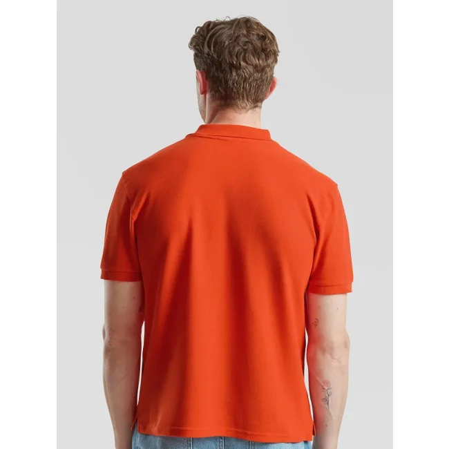 100% cotone pettinato ringspun piqué. Polo morbida al tatto, vestibilità slim fit, chiusura a tre bottoni perlati colorati, struttura con spacchetti laterali, etichetta posteriore sul retro con strappo in tessuto. Col. 94, HD, R6, RX, VF, VH, HP, H1: 65% pol. 35% cot. (30: 170 g / m²).