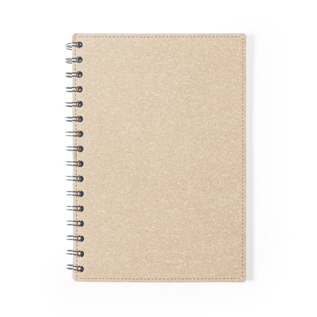 Taccuino ad anelli - formato A5 - della linea natura, con copertina rigida in robusto cartone riciclato. 80 fogli con layout a righe, finitura kraft ed etichetta riciclata.