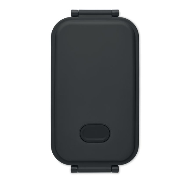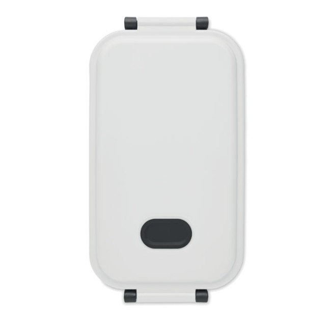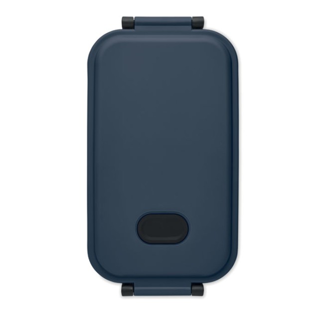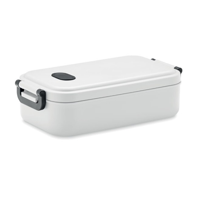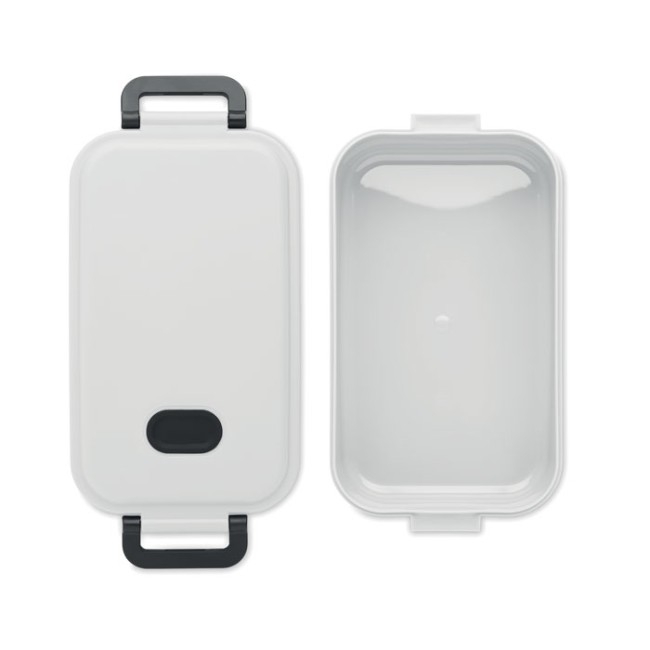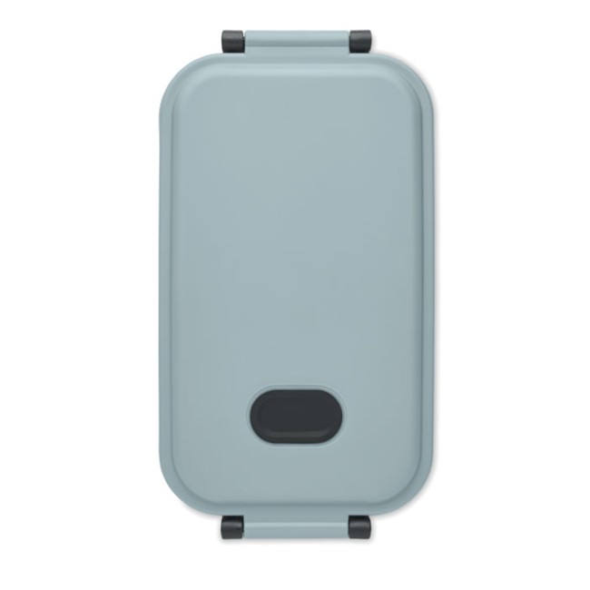 Porta pranzo in PP con coperchio ermetico, valvola in silicone e due fibbie laterali. Capacità: 800 ml.