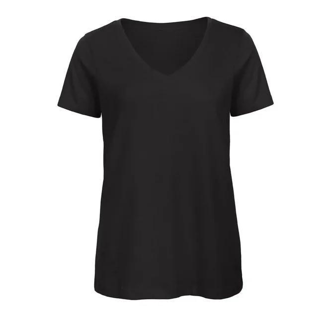100% cotone organico o organico in-conversion ring-spun. T-shirt manica corta, set-in, scollo a V con bordino sottile, morbida al tatto, cuciture al collo e spalle rinforzate, struttura con cuciture laterali, leggermente sfiancata, nessuna etichetta.