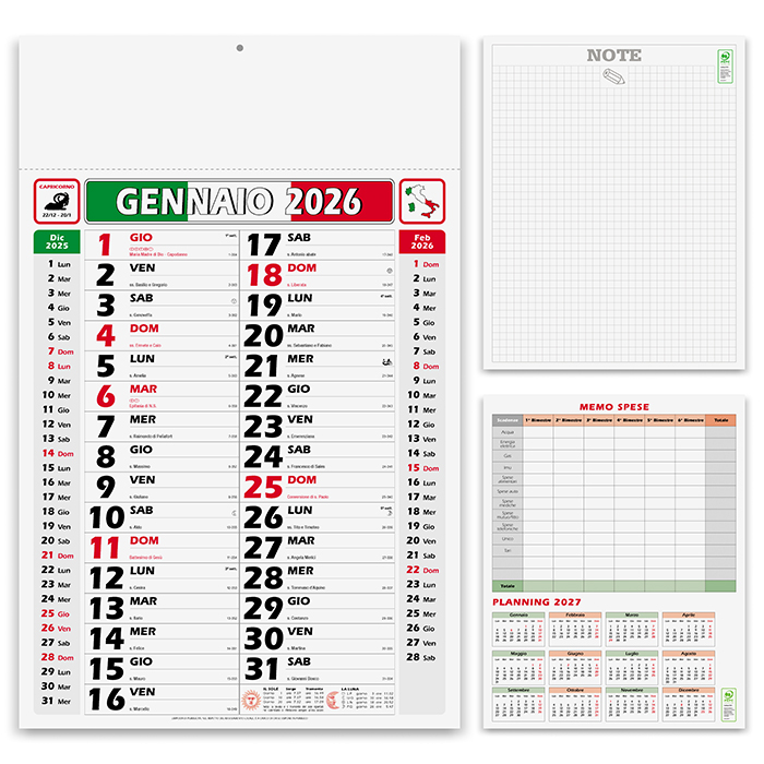 • calendario: cm 30x47 ca testata: cm 30x9 ca