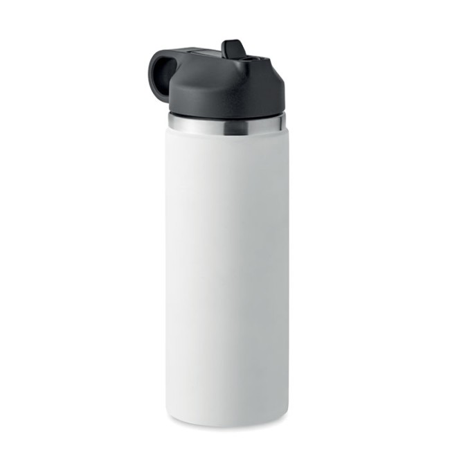 Borraccia sottovuoto isolata a doppio strato in acciaio inox riciclato (90% acciaio inox riciclato e 10% acciaio inox), coperchio con impugnatura in PP, tappo con cannuccia integrata. 500 ml.