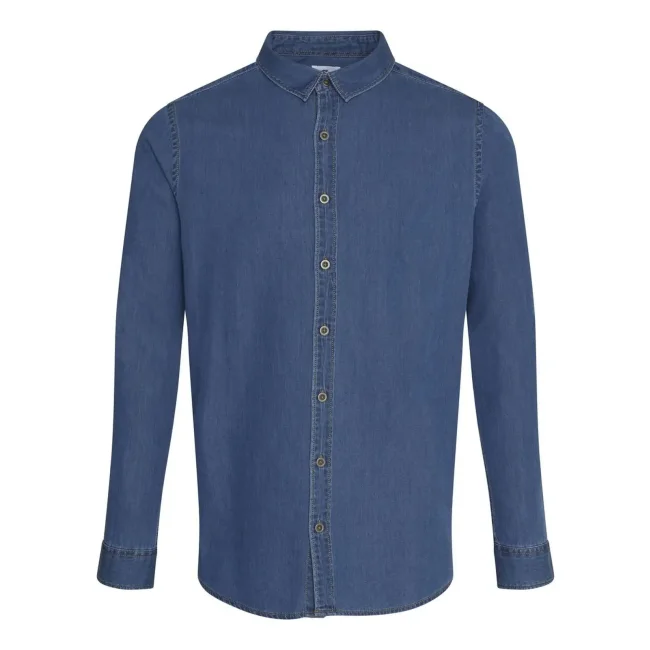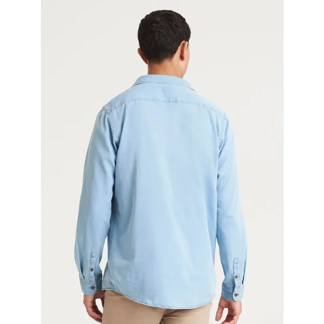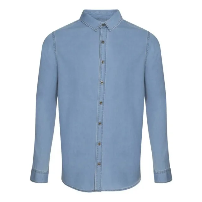 100% cotone. Camicia uomo manica lunga senza tasche. Cuciture laterali in contrasto, cuciture contrasto su maniche, colletto e polsini, Polsini con due bottoni ciascuno. Ideale per la personalizzazione.