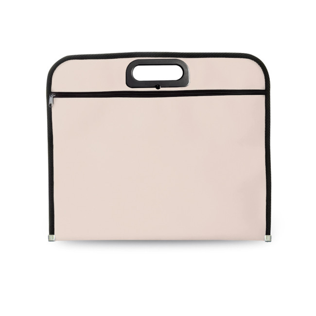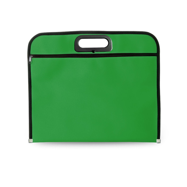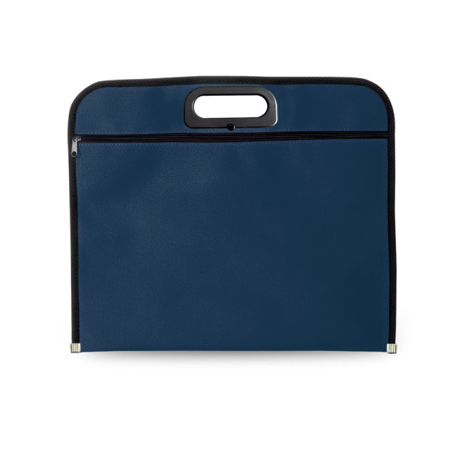 Portadocumenti con chiusura a zip in morbido poliestere 600D dai colori vivaci. Con maniglie per il trasporto dall'originale design fustellato con rinforzo e bordatura in nero con piastra di rinforzo in metallo sulla base.
