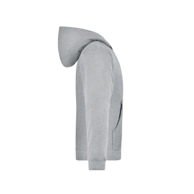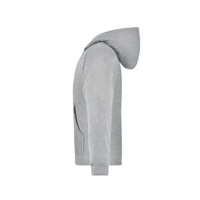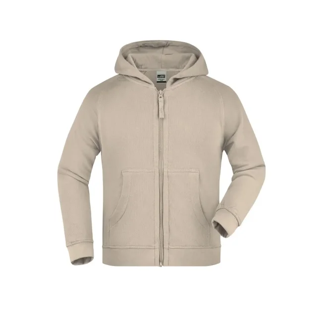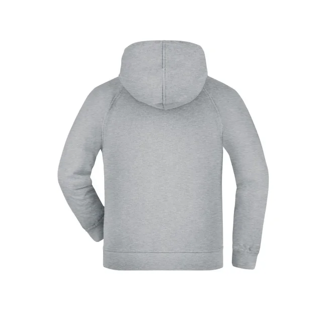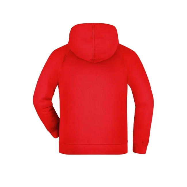 100% cotone. Giacca classica con cappuccio, French terry di alta qualità, sgarzata, Taglio raglan, Bordino con elastan, necktape, Cappuccio a doppio strato con fodera in jersey e cordino, Cuciture doppie sulle maniche e sul bordino, Tasca a marsupio, senza cordino. Tessuto esterno (300 g/m²). Bambini.