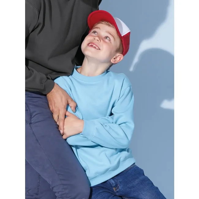 Tessuto esterno (300 g/m²): 80% cotone, 20% poliestere. Felpa comfort classica con collo rotondo, Felpa di alta qualità, felpata internamente, taglio classico con robuste cuciture doppie, bordino con elastan, necktape, mezzaluna sulla nuca. Lavabile a 60 ° C, mantiene la forma. Cotone/Fibra sintetica, Bambini, Manica lunga