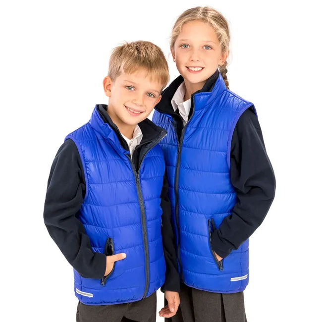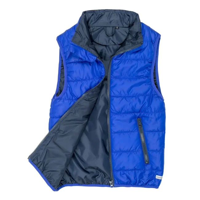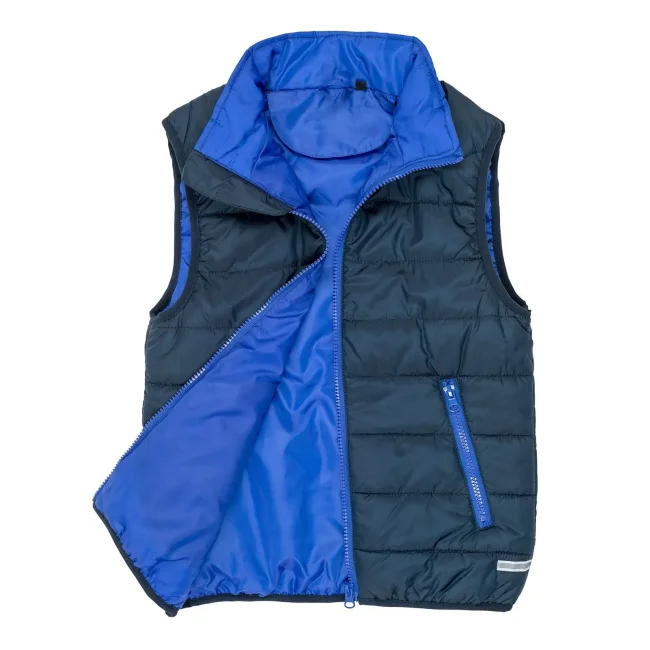 Esterno, imbottitura e rivestimento 100% poliestere. Giacca smanicata con fodera interna e zip di colore contrastante, zip frontale, dettaglio catarifrangente sul fianco, polsini e orlo inferiore, due tasche con zip, facile da comprimere.