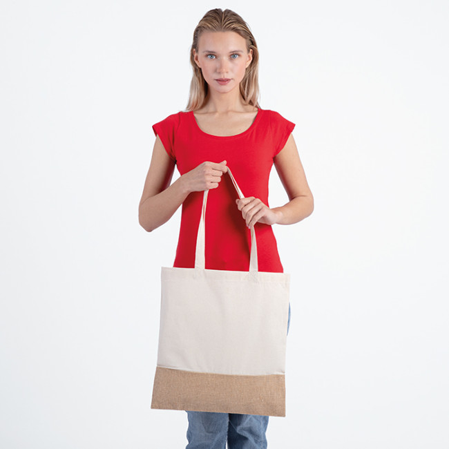 borsa shopping cotone e juta manici lunghi colore naturale Tecnica di stampa consigliata: Serigrafica - Transfer - Digitale 150 GR