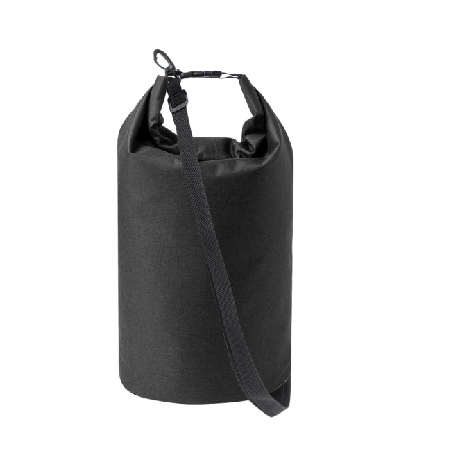 Borsa impermeabile con capacità di 10L, realizzata in resistente poliestere 300D RPET. Zip di sicurezza, manico con fibbia di regolazione e moschettone inclusi. Etichetta distintiva RPET sulla cerniera. Disponibile in una gamma di colori bicolore. Presentata in un sacchetto individuale riciclato. Il materiale RPET è realizzato con plastica riciclata per incoraggiare il riutilizzo dei rifiuti plastici e contribuire alla sostenibilità del pianeta.