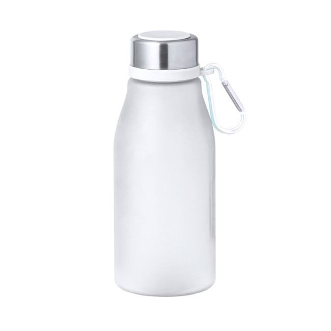 Borraccia in RPET da 370 ml di capacità. Tappo di sicurezza a vite in Acciaio Inox e pratico moschettone in metallo con colore abbinato alla borraccia. Disponibile in un'ampia gamma di colori a tinta unita con finitura opaca. BPA Free e presentata in un'attraente scatola di design Kraft.Il materiale RPET è realizzato con plastica riciclata, in modo da incentivare il riutilizzo dei rifiuti plastici e aiutare la sostenibilità del pianeta.