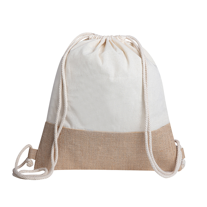 sacca zaino cotone e juta doppia corda di chiusura colore naturale Tecnica di stampa consigliata: Serigrafica - Transfer - Digitale 150 GR