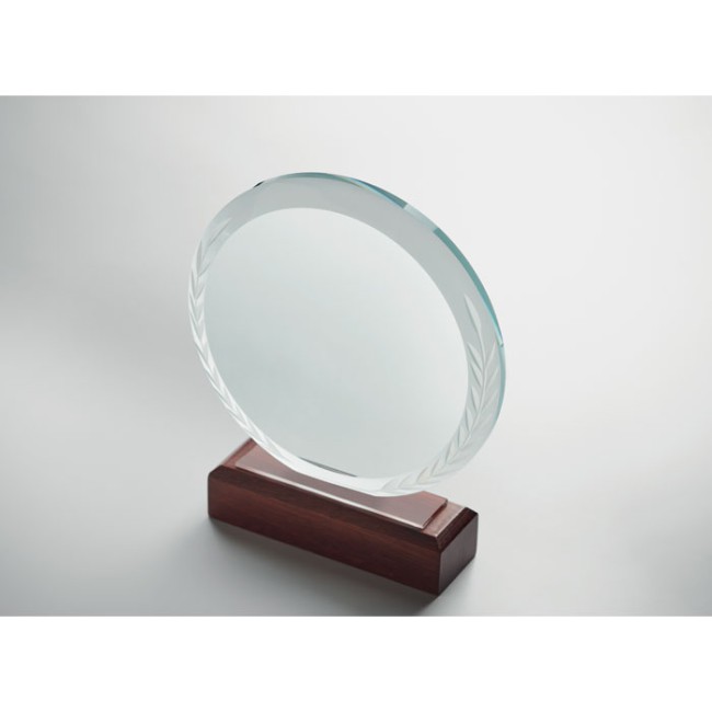 Espositore rotondo per premio o targa in cristallo su base in legno di faggio in confezione regalo Sorprendete una persona speciale con un trofeo di cristallo personalizzato. Il legno di faggio dona un aspetto naturale che attirerà sicuramente l'attenzione. Il legno èun prodotto naturale, ci possono essere leggere variazioni di colore edimensioni per ogni articolo, che possono influenzare il risultatofinale della personalizzazione.