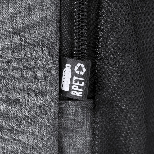 Zaino frigo da 10L della linea natura, realizzato in resistente poliestere RPET 600D di alta qualità, prodotto in plastica riciclata per promuovere il riutilizzo dei rifiuti plastici e contribuire alla sostenibilità del pianeta. Scomparto principale con chiusura a doppia zip e fodera in PEVA. Tasche laterali in rete e tasca frontale ad accesso rapido con chiusura a zip e tiretto. Fascia elastica in alto e tasca sul retro, completamente imbottita. Distintivo RPET sull'etichetta.