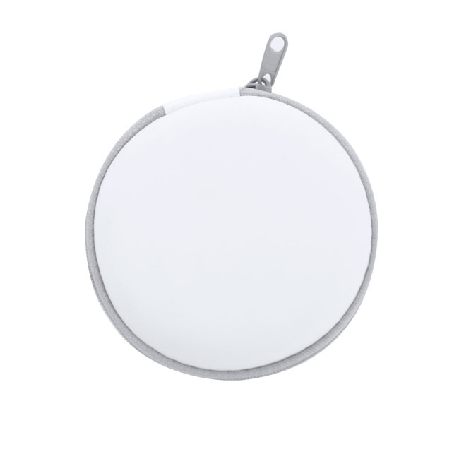 Occhiali da sole pieghevoli con protezione UV400, realizzati in PC Riciclato. Montatura pieghevole resistente con design elegante e finitura lucida di colore nero. Le lenti sono nere per garantire stile. Presentati in una custodia bianca a forma rotonda con chiusura a zip.