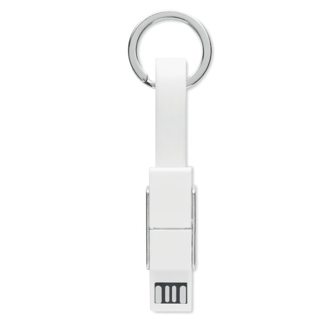 Portachiavi con cavo di ricarica 4-in-1. Ingresso/uscita: Tipo-C x2, Tipo-A, Micro USB.