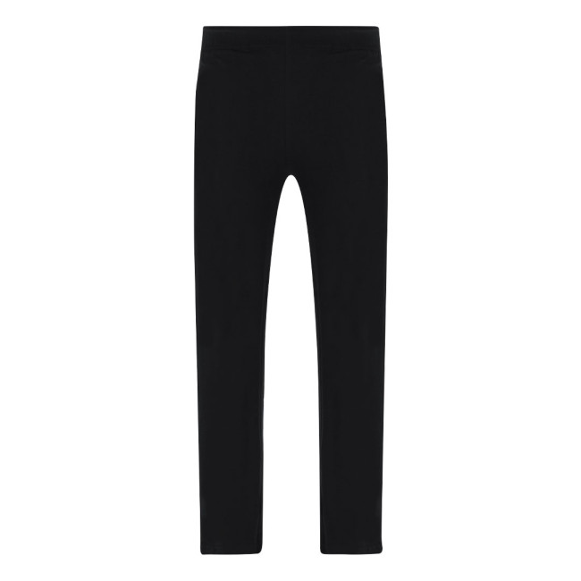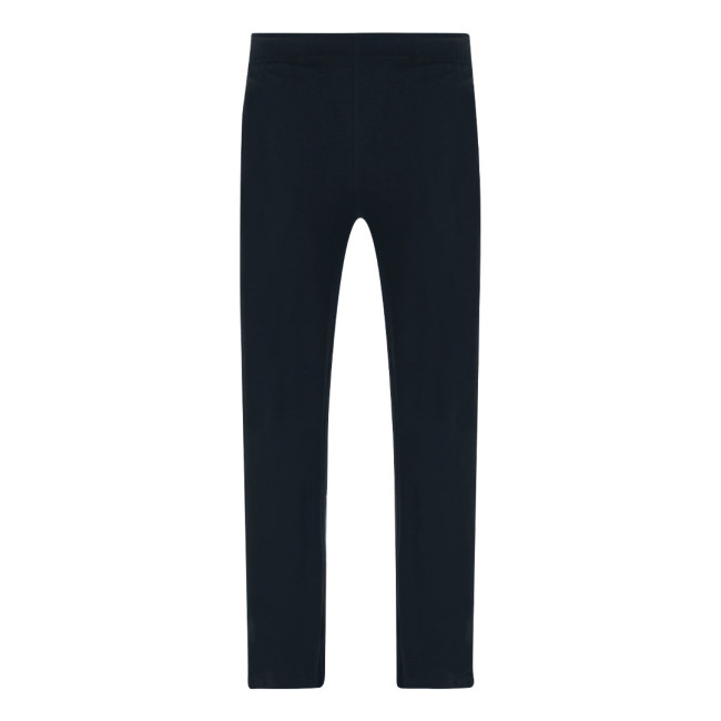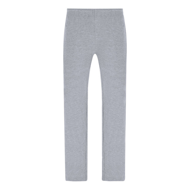 Pantaloni lunghi unisex in cotone a maglia liscia e taglio dritto. Con due tasche laterali e vita elastica con cordino regolabile coordinato. Doppia cucitura nei bordi.