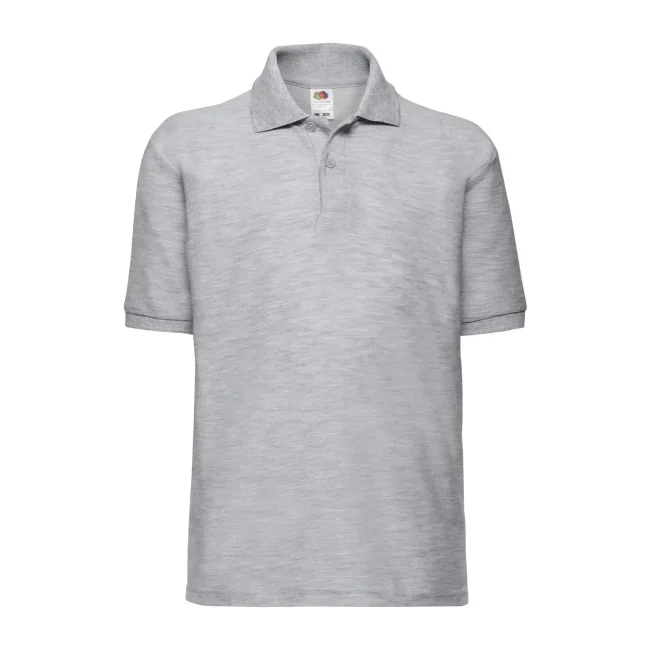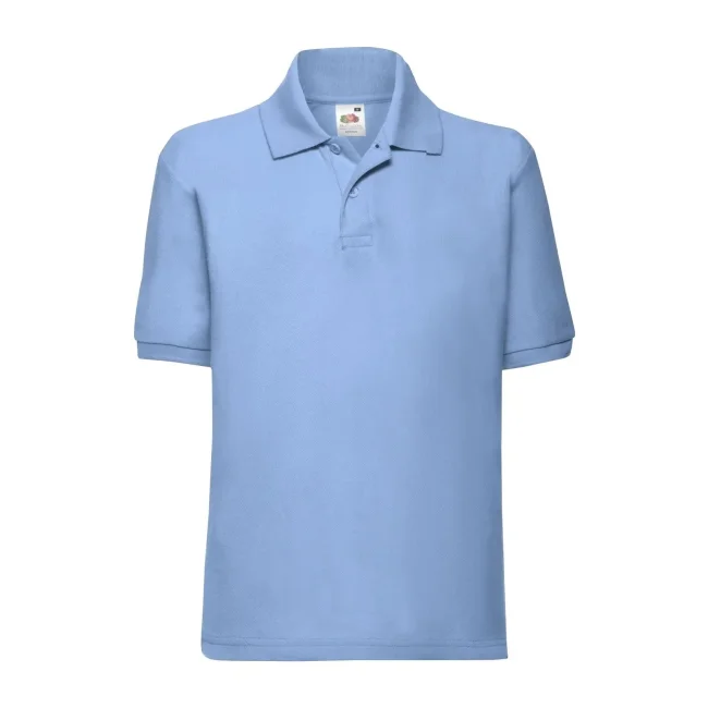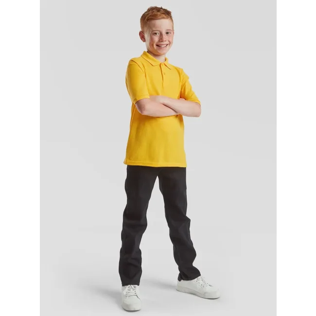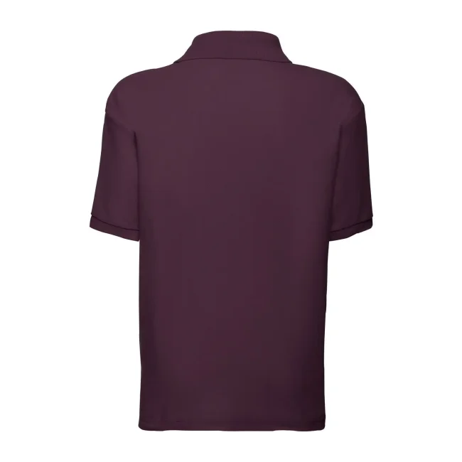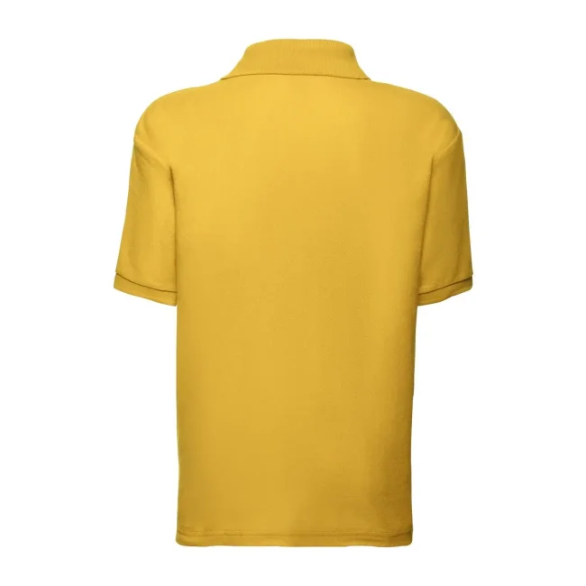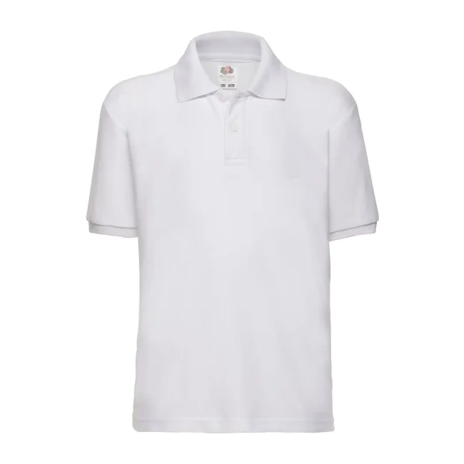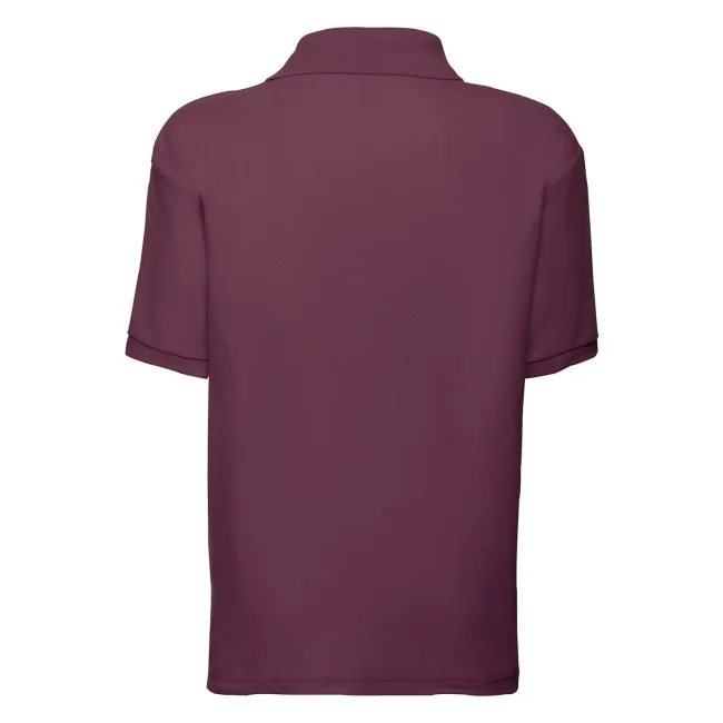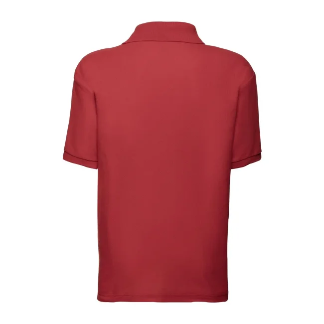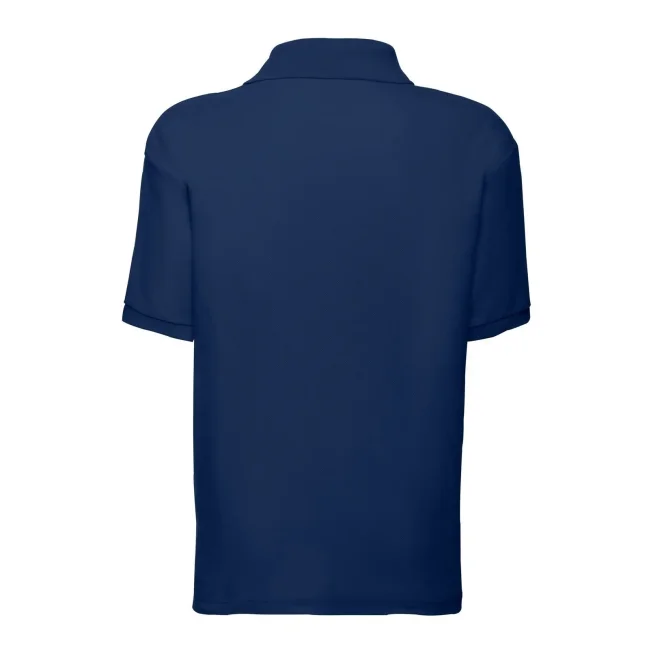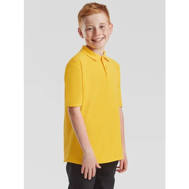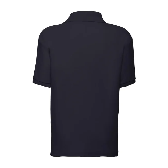 65% poliestere, 35% cotone. Polo maniche corte set-in, chiusura a due bottoni tono su tono, cucitura rinforzata su spalle e collo con fettuccia interna, struttura con cuciture laterali. (Col. 30: 170 g/m²).