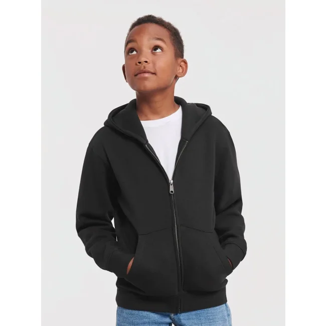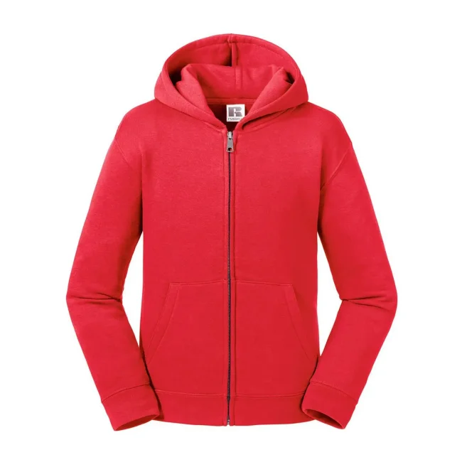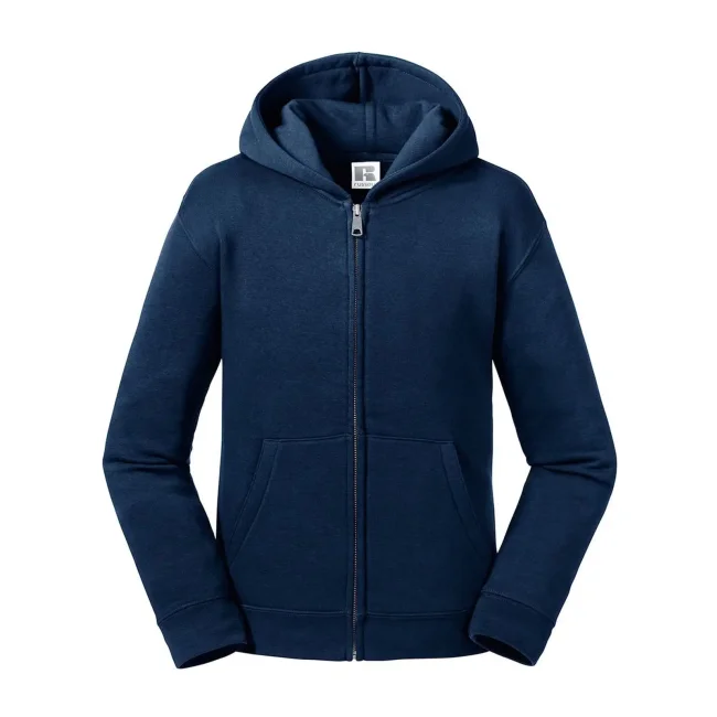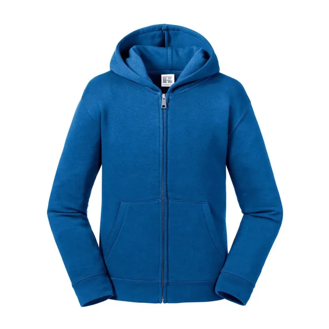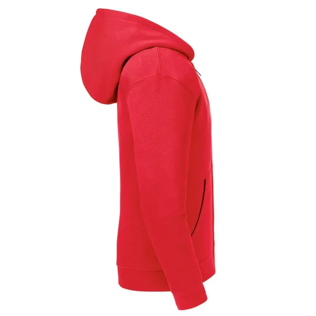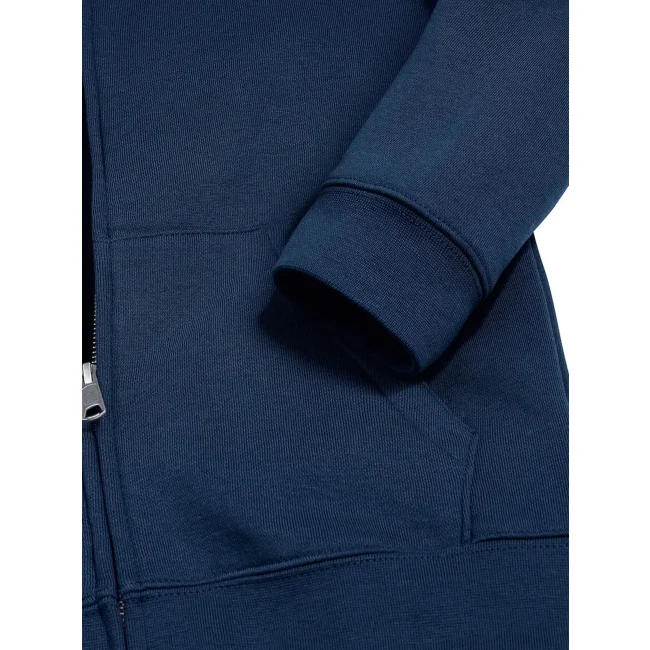80% cotone ring spun pettinato, 20% poliestere. Tessuto esterno cotone 100% (tessuto a 3 strati). Felpa con zip e cappuccio doppio strato, taglio sciancrato, giromaniche, polsini e bordo con cuciture coperte, zip intera in metallo YKK coperta.