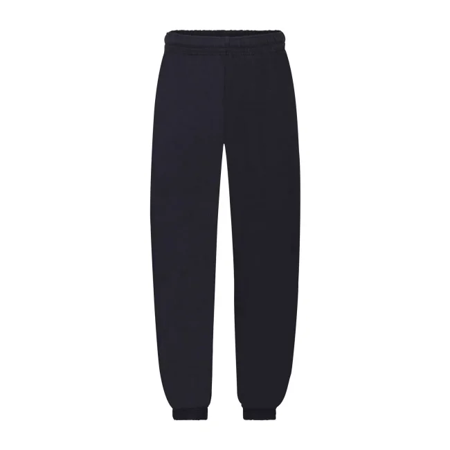 80% cotone, 20% poliestere. Pantaloni con elastico in vita e cordoncino, due tasche laterali, elastico alla caviglia, felpati internamente. Etichetta removibile.
