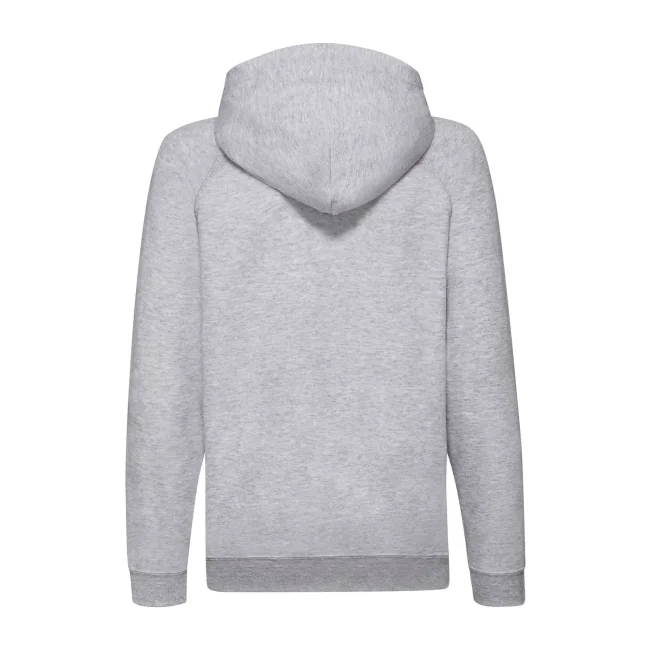 80% cotone Filato Belcoro, 20% poliestere. Felpa leggera sgarzata, maniche raglan, orlo inferiore e polsini in costina cotone/Lycra, cappuccio a doppio strato senza cordoncino, tasca frontale a marsupio. Struttura tubolare. Etichetta removibile.
