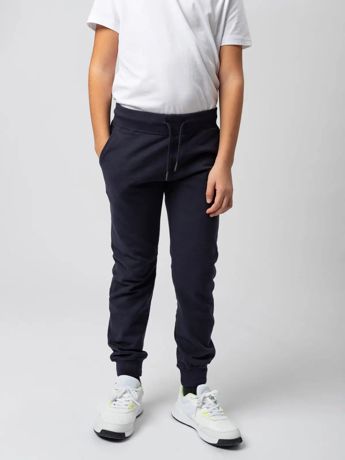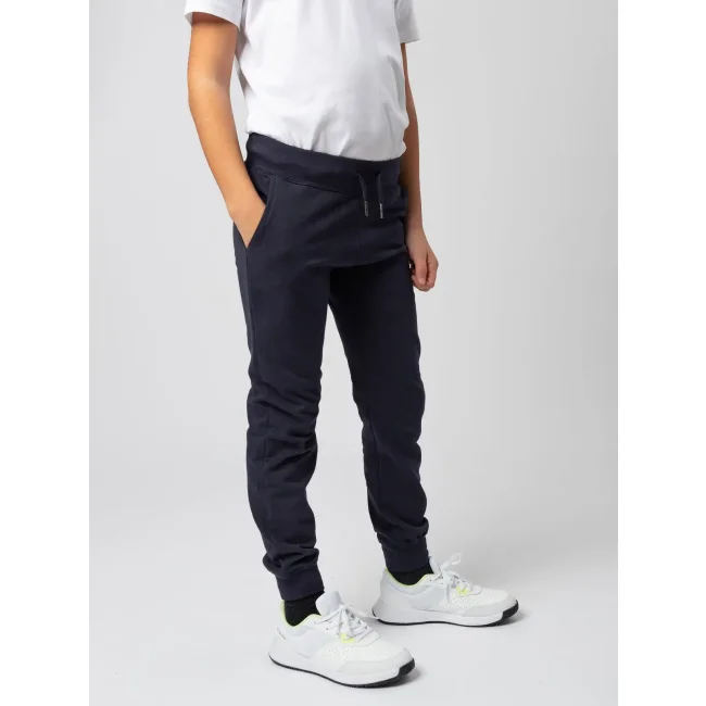 80% cotone, 20% poliestere. Pantaloni in felpa french terry, tasche laterali, fondo gamba in costina elasticizzata, cordini tondi tono su tono con punta in metallo, occhielli in metallo. Etichetta strappabile. Parte esterna: 100% cotone, parte interna: 50% cotone, 50% poliestere. Il trattamento peach finish rende il tessuto ancora più morbido al tatto.