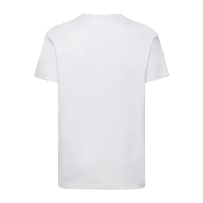 100% cotone ring spun. T-shirt maniche corte set-in, struttura con busto tubolare, prodotta con filato Belcoro per una maggiore morbidezza. Collo in costina cotone/licra e fettuccia interna. Col. 94: 97% cot. 3% vis. (Col. 30: 160 g/m²).