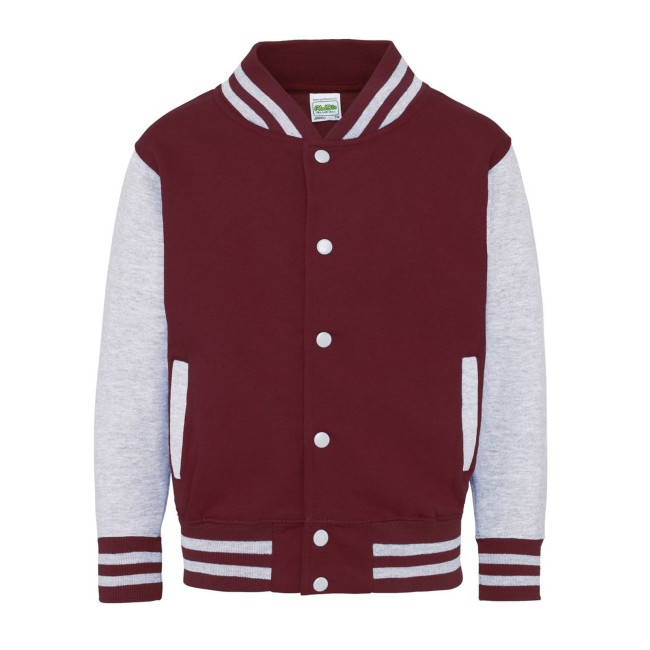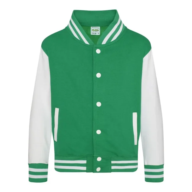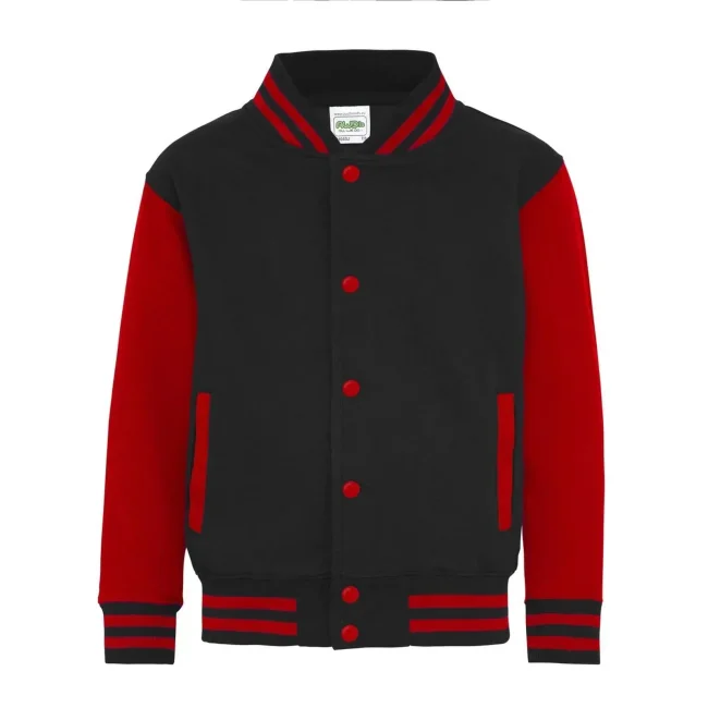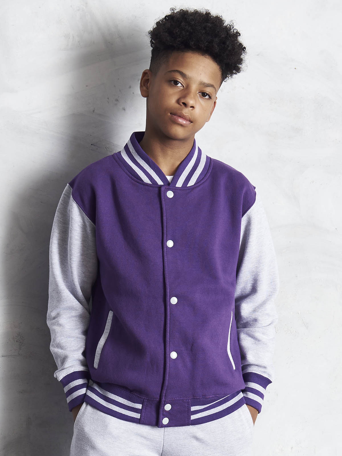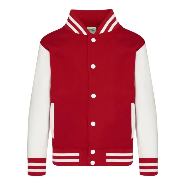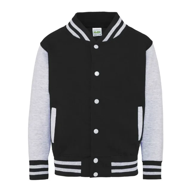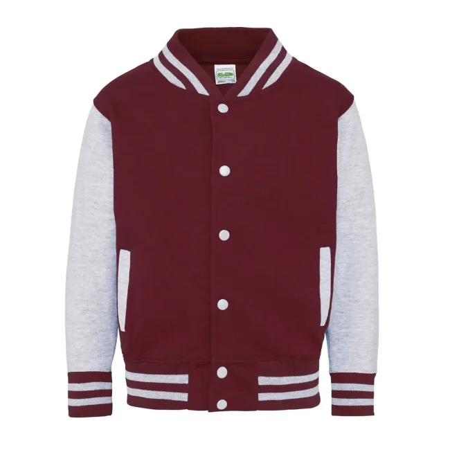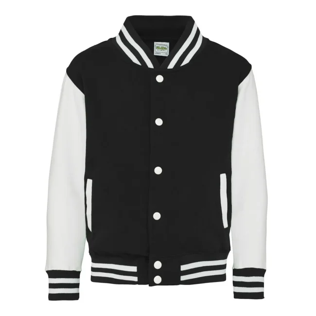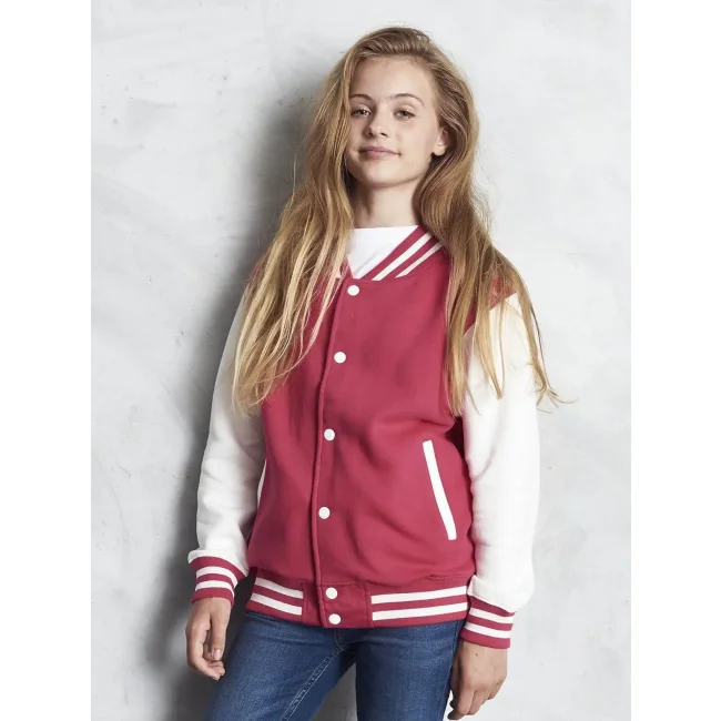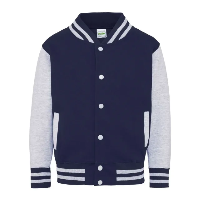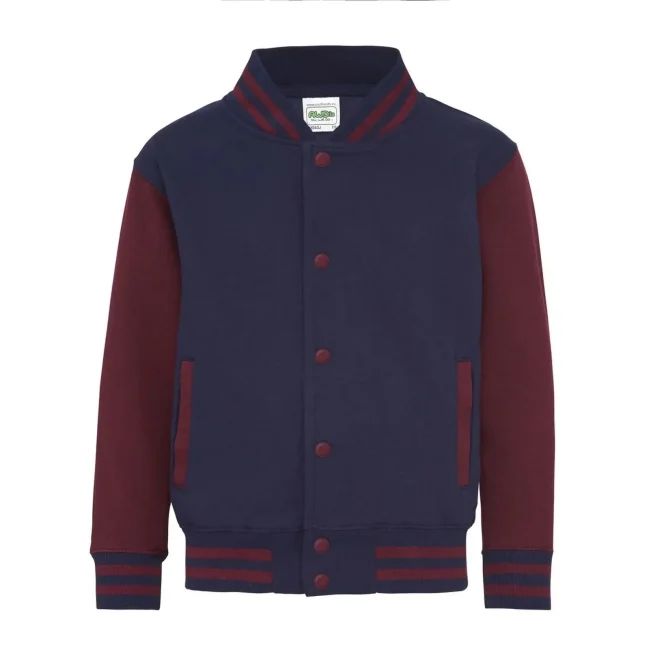 80% cotone, 20% poliestere. Felpa tipo baseball con maniche set-in in contrasto. Collo, polsini e vita con strisce in contrasto, chiusura con bottoni automatici, tasche a filetto, nastro di rinforzo al collo, felpata internamente, struttura con cuciture laterali.